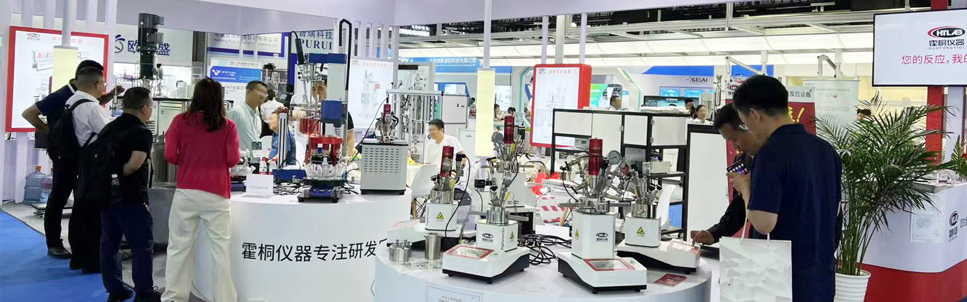 霍桐儀器展位前客戶停留駐足觀看了解霍桐各種實(shí)驗(yàn)室反應(yīng)釜